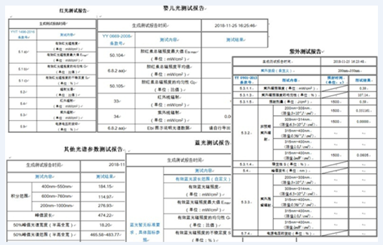 ? YY/T 1496-2016 《紅光治療設(shè)備》: 有效紅光輻照度 、 均勻性 、 不穩(wěn)定度 、 輻射光譜 、 紫外輻射 、紅外輻射 、 電源電壓波動(dòng)的測(cè)試 、一鍵生成紅光測(cè)試報(bào)告。
